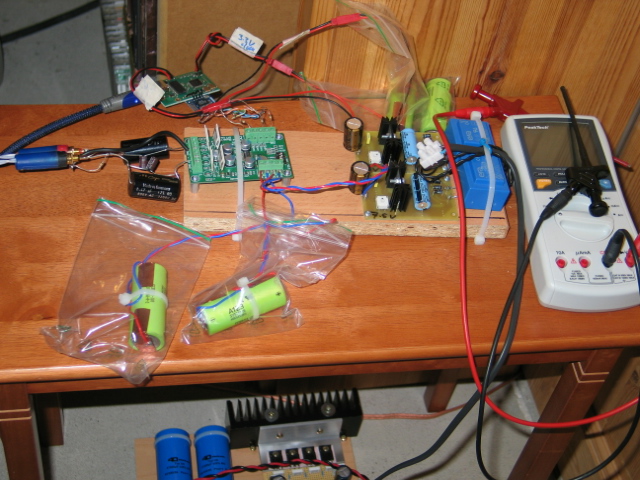 At the right a simple power supply to feed the digital section. In the plastics bags (for safety ;-) the A123 Batteries for the analog sections. A small disadvantage of this setup